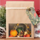 Stickers with a photograph of a thanksgiving harvest, set on a rustic wooden table. Pumpkin, potatoes, squash etc... make up this bountiful collection of food. Colorful autumn leaves surround the cornucopia basket.