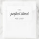 Custom-designed wedding coffee favor stickers and labels featuring "The Perfect Blend" rustic modern black and white design.
