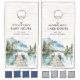 A serene painted watercolor mountain lake cornhole set, for family reunions at the lake house, cabin, or campsite. The background has a white washed wood effect, and the watercolor is a beautiful forest lake scene with dock, and mountains in the background. Simply add your family name, date established, and location. Use the "Edit this design template", to change text, or fonts, and font colors. Customize for family reunions, or as a wedding gift for a newly married couple that loves outdoor forest vacations and would enjoy their own set.