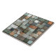 This dramatic design features a mosaic of rectangular and square shaped tiles in random sizes and natural earth tones with soft sage green. The variation throughout each tile mimics an authentic aged appearance with scuff marks and warm, well-loved appearance to bring rustic charm to any interior setting. This pattern is part of a coordinated trio that can be mixed and matched for a rich, natural-looking variation across multiple tiles, ideal for a country farm house look as kitchen or bathroom decor. Search ID1187a, b and c to see each of the variations. Note: design contains generative content.