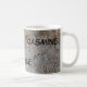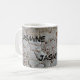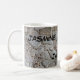 This morning coffee or tea mug features a rustic photo of a beautiful pattern found on a tree trunk. This tree bark features an abstract pattern of white, golden brown, and gray. Earth tone swirls and dots add interest to the textured white background. Your name is repeated three times on the mug and can easily be personalized.