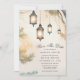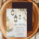 Rustic Tree Botanical Lantern Lights Save The Date Card. Beautiful elegant watercolor wedding design with rustic botanical hanging lanterns. This custom modern wedding design can easily be personalized with your own wedding details.