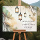 Rustic Tree Botanical Lantern Lights Wedding Welcome. Beautiful elegant watercolor wedding design with rustic botanical hanging lanterns. This custom modern wedding design can easily be personalized with your own wedding details.