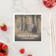 Rustic country wedding custom napkins featuring an enchanting outdoor woodland wedding setting, glowing string twinkle lights, a romantic carved heart on the trunk of a tree with your initials and modern wording.