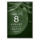Light up your rustic wedding reception with these charming table numbers. The lush green background features a beautifully illustrated tree adorned with twinkling string lights. Carved initials add a personalized touch, making each table number a unique keepsake for your special day. Perfect for outdoor or indoor celebrations, these table numbers create a warm and inviting atmosphere.
