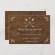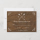 This response card features a tree bark texture in the background for a rustic and warm feel. There are two crossed arrows at the top with a heart and the initials of the bride and the groom. Swirl decorations on the corner add a stylish touch. This RSVP card is trendy yet elegant and it’s ideal for a wedding with a nature or outdoors theme.