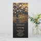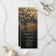 This beautiful wedding program features a rustic yet elegant design with a tree at sunset or dusk adorned with strings of lights. The titles are written in fancy script calligraphy, and there is space for your ceremony and wedding party details, as well as a short thank you for your guests. Wonderful way to welcome your friends and family to your wedding celebration.