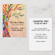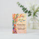 This decorative business card features a print of a rainbow colored tree of life mosaic on a beige background.