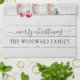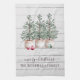 A warm rustic Christmas tree farm theme with festive ornaments and merry Christmas script typography overlay, on a whitewashed shiplap wood background with falling snow. For a soft earthy homey rustic vibe with modern typography for your holiday kitchen decor. See the full collection of matching pieces for this design at: https://www.zazzle.com/collections/rustic_pine_trees_christmas-119221021302253069