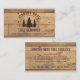 Rustic wood plank and trees business card design personalized with your custom text. Ideal for landscaping, lumber, forest and cabin or lake house property rental businesses and more. ASSISTANCE: For help with design modification or personalization, color change, resizing, transferring the design to another product or if you would like coordinating items, contact the designer BEFORE ORDERING via the Zazzle Chat MESSAGE tab or email makeitaboutyoustore@gmail.com.