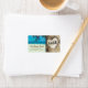 Exotic tropical address labels featuring a summer beach setting, string twinkle lights, and a rustic palm tree with a carved heart featuring your intials, family name and return address.