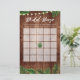 Bridal Bingo gme card with rustic design, tropical leaves and string lights.