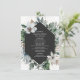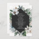 Rustic beach theme featuring palm leaves and white florals around dark gray geometric design.
