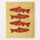 A digital rendering of four trout facing in opposite directions, with an antique rustic look, superimposed on an old paper background image. There are two places for you customize by adding your own text.