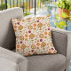 Modern and whimsical thanksgiving theme pillow featuring illustration of turkey dinner.