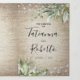 Budget tuscan fairytale wedding trifold invitation featuring a rustic chateau stone background, and elegant watercolor green foliage with accents of faux gold foil. You are able to add a personalized photo of you and your partner, the wedding details such as accomodation information, gift requests, the invitation, and an rsvp postcard for your guests to cut off and send back.