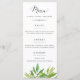 Chic typography, watercolor olives and branches, wedding menu card with hand drawn script and decorative accents. Back of menu features matching olive branch pattern.