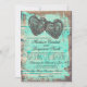 Rustic Two Hearts Barn Wood Aqua Wedding Invites