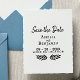 Rustic Typography Custom Wedding Save the Date Stamp. Create your own rustic save the date stamp with the plant leaves. The design has Save the date text in trendy typography, bride and groom names, wedding date and wedding location. Personalize the stamp with your data.