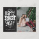 Happy New Year! Send new year greetings to family and friends with this customizable photo holiday postcard. It features rustic typography on a faux chalkboard background with a snow pattern. Personalize by adding a name and photo.