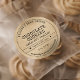Vintage style round food label design, featuring apothecary inspired design with typewriter font and brown paper effect background. This rustic round bakery sticker is great to use for homemade sweet and savoury treats such as cookies, cupcakes, cakes, bread and more. This editable food label includes space for your bakery name and website, product name and weight.