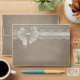 Beautiful rustic , classic design with an old burlap look background and decorative lace accent across the top with a photo of a white satin ribbon and bow. Wonderful design with a combination of rustic and classic themes. Please know that the design does not include an actual bow and ribbon or a burlap background, there photo representations. This custom design also comes on many other ready to customize template products and can be placed on many other Zazzle product you might like. Contact me at mshake5918@yahoo.com for custom designs. Follow the link below to see the rest of the Rustic Vintage Burlap & Lace Wedding product collection.