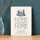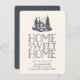 Share your new address with these rustic vintage style moving announcements. Design features an illustration of a rustic cabin nestled in the woods, with "home sweet home" in dusty charcoal navy blue lettering. Add your greeting, family name and new address beneath."