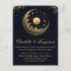 Capture the magic of the cosmos with our Rustic Vintage Celestial Wedding Invitation Postcard. Featuring a captivating graphic image of a decorative moon, sun, and stars in luxurious gold colors, this invitation sets the stage for an enchanting celestial-themed celebration. Our engaging wedding wording template ensures your invitations postcard convey just the right sentiment for your special day. With added touches of gold glitter on the corners against a sophisticated black background, our invitation exudes elegance and charm.