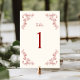 Rustic Vintage Chinoiserie Crimson Red Wedding Table Number