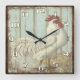 Rustic Vintage Country Rooster Kitchen Square Wall Clock