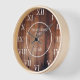 Rustic vintage, dark barn wood wall clock with large Roman numbers.