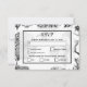 This design features rustic black and white vintage flowers. The black and white floral design combines vintage flowers together with an opaque white layer, a black border and simple text to create a sophisticated classy look. The elegant arranged layout on one side and the black opposing side displaying the bride's and groom's names combine to bring together a truly unique design. The use of classy typography for the wording text compliments the design. This RSVP acceptance card design is ideal for any wedding theme. The perfect design for all seasons. Matching wedding invitations and other stationery items are also available.