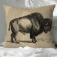 Rustic Vintage Line Art Buffalo Throw Pillow