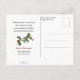 Charming nostalgic vintage winter vignette featuring rustic winter scene with man carrying his pine Christmas tree with snow-covered village in background framed with holly and birds. Back features complementary holly graphic and editable text fields.