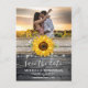 Setting plans for your rustic wedding and want to include golden yellow sunflowers/daisies in your announcements, invitations and save our date cards? Here're some unique and lovely sunflower save the date postcards that are easy to insert your own photo into. The watercolor floral art work illustrates a large yellow gold sunflower atop a brown burlap and white lace ribbon. Twinkling string lights over a gray vintage wood create a luminous effect, and another brightly lit sunflower is on the back side. Would you like a different colored western barn wood? The creative options on these rustic sunflower save the date invitations are numerous. Just customize the design further to reveal other shades of wood. Even switch the lace ribbon to teal green, navy blue, purple, burgundy red, and more! The typography style includes an elegant brush calligraphy script , but these fonts can be changed by you as well. Enjoy creating the perfect stylish save the date invitations for your special day! Category: spring flowers fall engagement photo template save the date invitations; country rustic save the date invitations; and vintage save the date invitations. Autumn/summer wedding party theme colors: yellow gold, grey, brown and white.