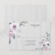 Rustic florals in muted tones of violet, lavender, and purple with white floral accents and lush matching greenery over a whitewashed wooden background RSVP. Matching wedding invitation available.