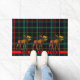 A timeless buffalo plaid pattern in red and green featuring walking moose silhouettes door mat. Plaid never goes out of style. Perfect for home decor or rustic cabin decor. Simply personalize with your name.