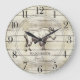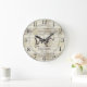 Rustic light barn wood and mountain goat family name large clock for your mountain cabin, lake house, tiny house or any rustic woodlands, wilderness, or country setting. The stylish script and serif typeface contrasts gives this design a contemporary rustic vibe.