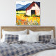 This design features a watercolor design with a rustic barn and flower field set against blue mountains. Created by Simply Farmhouse Press.