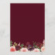 Rustic colorful watercolor wedding day elements, timeline program. Card features church, camera, bottle with glass, plate setting, music notes, cake, bouquet, and retro car. Back of card features watercolor burgundy and blush floral and foliage border with matching burgundy red background color . Designed to coordinate with our Burgundy Blush Botanical Floral Collection.