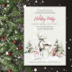 Invite guests to celebrate the season with this modern rustic holiday party invitation featuring a hand-painted watercolor deer standing among snowy evergreens and soft winter greenery. The front design blends natural woodland beauty with elegant typography, while the back showcases a coordinating mistletoe and red bow pattern for a festive finishing touch. Perfect for cozy cabin gatherings, mountain retreats, or classic Christmas dinner parties. Personalize with your family name, event details, and RSVP information for a timeless invitation that feels warm, refined, and welcoming.