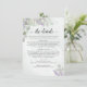 This beautiful enclosure card is designed to provide your guests with additional information on the reception, accommodations, travel arrangements, registry, website, directions, or any other specifics that your guests might require. Features a beautiful rustic design with watercolor eucalyptus leaves and sprigs of lavender flowers on a marbled pale blue background.
