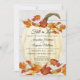 Vintage weathered cool grey wood background sets off the warm white pumpkin and rich dark fall colored leaves in reds, orange, ochre and brown. Rustic yet elegant design perfect for a crisp fall day wedding! Art was hand painted by Audrey Jeanne Roberts. Complete set available to coordinate. Copyright.