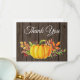 Rustic Watercolor Fall Pumpkin Autumn Thank You card. Rutic Wood Background. Country Vintage Retro Barn. Love and Thanks, beautiful script font. Add your message on back or leave blank and hand write. For further customization, please click the "Customize it" button and use our design tool to modify this template.