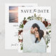 This lovely save-the-date design features watercolor pink, blush pink floral, masala, eucalyptus, and a photo on an arch. You can customize the information and add more to the back if necessary. View the collection on this page to find more matching items.