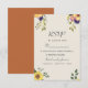 Elegant, modern, botanical, rustic floral wedding RSVP card with watercolor flowers, sunflowers, greenery and terracotta burnt orange back.