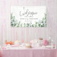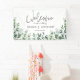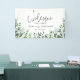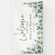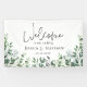 Elegant watercolored foliage of eucalyptus foliage and botanical branches and leaves in shades of sage, green and dusty blue. Beautiful rustic wedding banner with custom names and wedding date. Easily add the names of your bride and groom and their wedding day. See our collection for more gorgeous products with this design. Rustic Watercolor Foliage Wedding Banner.
