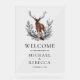 Amaze your guests with this elegant wedding welcome sign featuring a beautiful deer and rustic leaves with modern typography.