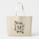 Rustic Watercolor Greenery Square Wreath Monogram Large Tote Bag