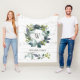 Get cozy and warm with this personalized rustic fleece wreath blanket. The elegant design features a watercolor botanical wreath in shades of teal, sage green and green on a background of white and gray faux weathered wood. In the center is a monogrammed initial accented by a flourish and family name below for you to customize in charcoal gray typography. From our hearts to yours, enjoy!